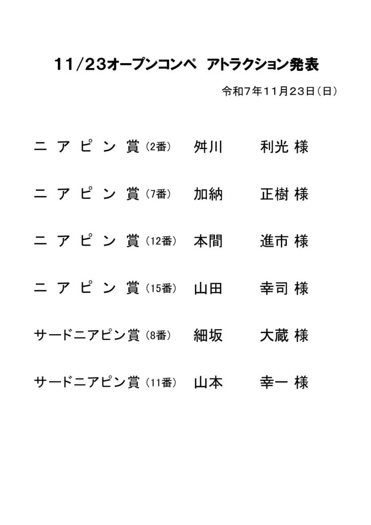 11月23日オープンコンペ アトラクションBy 北見カントリークラブ / 2025年11月23日 1123アトラクションhttps://kitamicc.jp/wp-content/uploads/2025/11/1123アトラクション.pdf